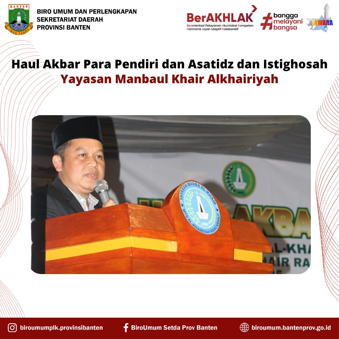 Dalam sambutannya, Plt. Kepala Biro Umum dan Perlengkapan mengajak seluruh hadirin untuk meneladani semangat, perjuangan, dan keikhlasan para pendiri yayasan dalam membangun dunia pendidikan. Ia menekankan pentingnya meneruskan perjuangan tersebut demi kemajuan generasi muda di Provinsi Banten.