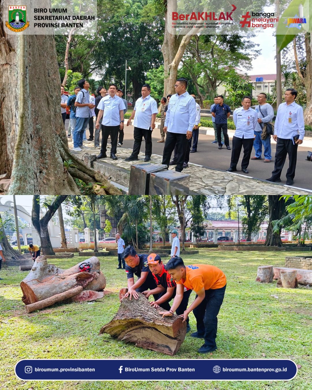 Sumber Gambar : Biro Umum Sekretariat Daerah Provinsi BantenKepala Biro Umum menghadiri kegiatan penebangan pohon yang berlangsung di area Gedung Negara Provinsi Banten pada Rabu, 15 April 2026. Kegiatan ini merupakan bagian dari upaya preventif untuk menjaga keselamatan dan keamanan lingkungan di sekitar kawasan tersebut.